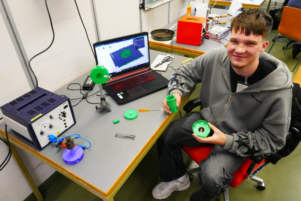 Vor dieser Woche im ESFZ Erlangen hatte ich keine Erfahrungen im Bereich 3D-Druck. Ich kam mit der Idee, eine Sirene zu drucken und deren Funktionsweise besser zu verstehen und mich in das Gebiet 3D-Druck einzufinden. Nach anfänglichen Besprechungen und einigen Tipps zur Programmwahl etc. begann ich, eine Sirene selbst zu designen. Ich benutze das Programm TinkerCAD, ein intuitives und kostenloses Programm. Zuerst machte ich eine einstufige Sirene. Diese hat nur eine Frequenz. Nach dem erfolgreichen Umsetzen dieses Projekts setzte ich mir als nächstes Ziel, eine zweistufige Sirene zu erstellen. Diese sendet bei Betrieb zwei unterschiedliche Frequenzen aus. Dies führt zu dem charakteristischen Sirenenklang wie beispielsweise bei Luftschutzsirenen. Mit dieser Sirene führte ich eine Frequenzmessung durch, die zeigte, dass tatsächlich zwei Frequenzen mit dem Intervall einer Quarte ausgesendet wurden. Diese hat auch mehr Volumen bewegt, also mehr Luft. Dadurch steigt die Amplitude des Druckverhältnisses und die Lautstärke steigt. Anfänglich bin ich davon ausgegangen, dass ein Akkuschrauber schnell genug dreht. Dies erwies sich jedoch als falsche Annahme, und nach Versuchen mit Elektromotoren zeigte sich, dass man tatsächlich eine relativ hohe Drehzahl braucht. Frequenzmessungen wurden bei circa 1000 RPM durchgeführt.