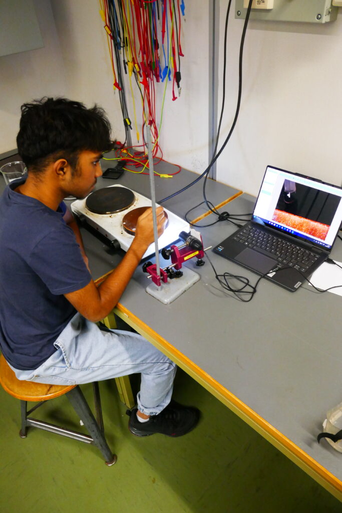 In meinem Projekt untersuche ich das Phänomen, in dem kleine Tropfen verschiedener Salzwasserlösungen auf unterschiedliche Oberflächen, bestehend aus verschiedenen Materialien, gegossen werden. In meinem Experiment diese Woche habe ich verschiedene Parameter variiert und dann mit verschiedenen Kristalllösungen experimentiert. Die beiden Parameter, die ich verändert beziehungsweise variiert habe, waren die Art von Material, woraus die Oberfläche bestand, und die Art an Salz, das ich für das Experiment verändert habe. Bei zukünftigen Camps habe ich vor, die Parameter Temperatur und Salzkonzentration der Salzwasserlösung zu verändern. Mit all den durchgeführten Experimenten fand ich die Kombination aus Kupfer und Alpensalz am besten.